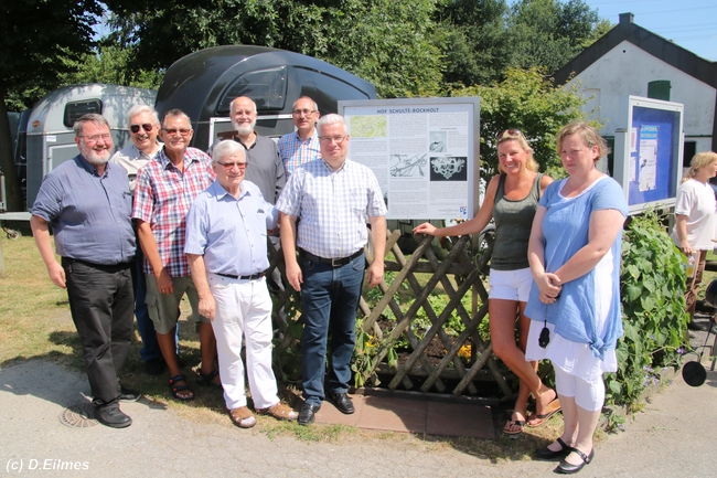 In Fortsetzung seines Projektes „Erlebbare Lokalgeschichte“ hat der Heimatgeschichtskreis Eiberg nun eine weitere, geschichtliche Informationstafel erstellt. Diesmal widmet sich die Info-Tafel dem erstmals um 1250 erwähnten Hof Schulte-Bockholt am Schultenweg 98. Diese konnte am 7. Juli 2018 der Öffentlichkeit übergeben werden. An der kleinen Feier nahmen rund 35 Personen bei bestem Wetter teil, darunter auch zahlreiche Vertreter aus dem Stadtrat und der Bezirksvertretung Steele-Kray.